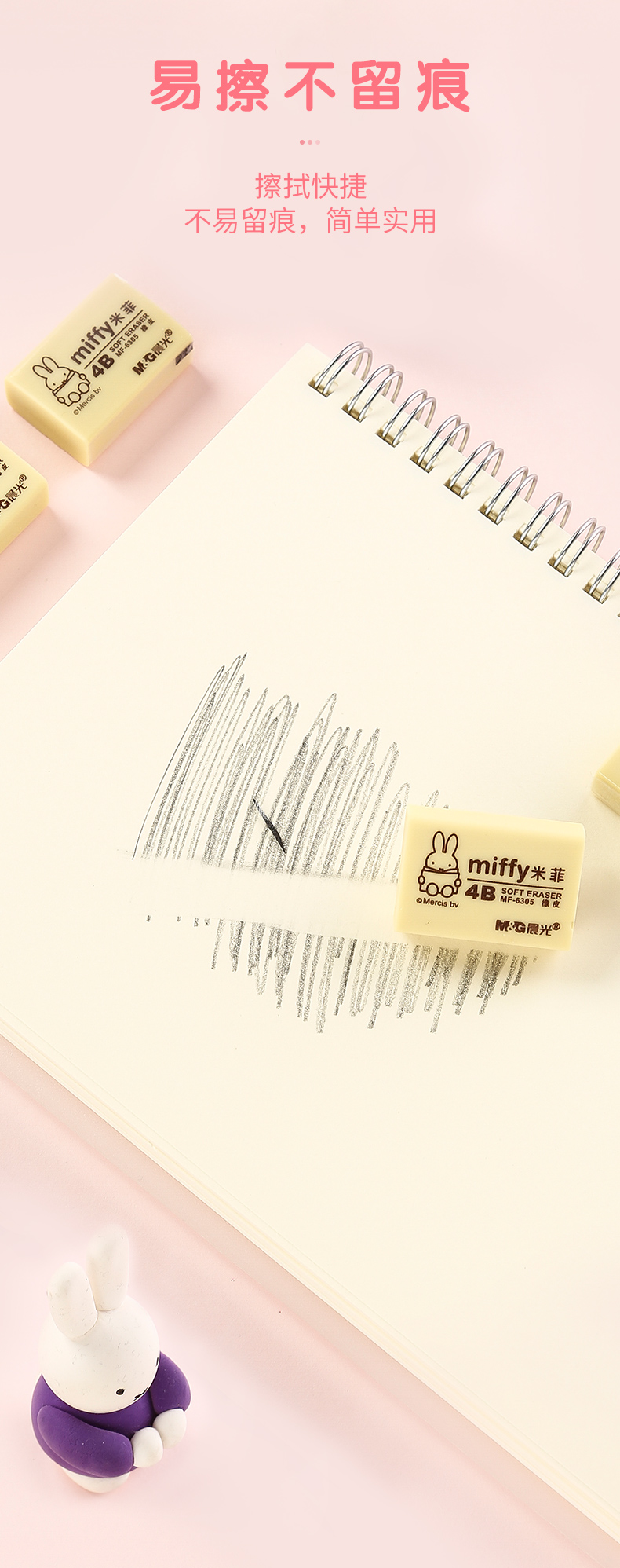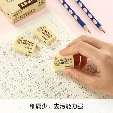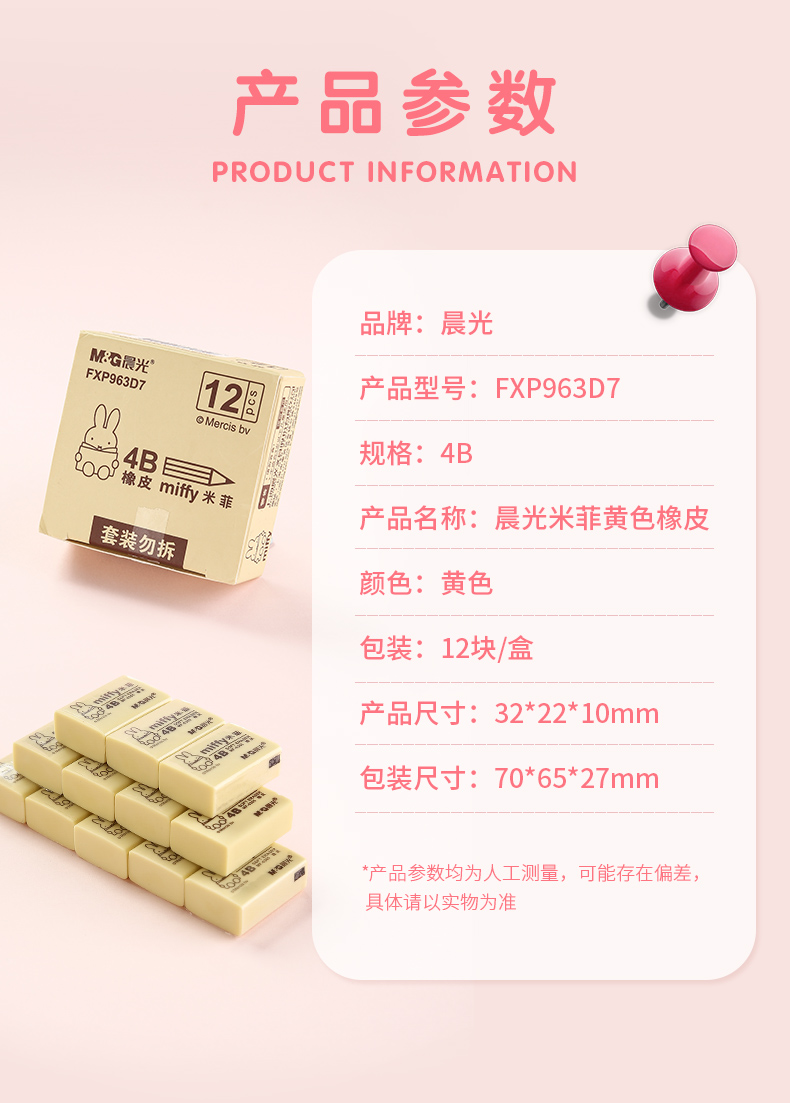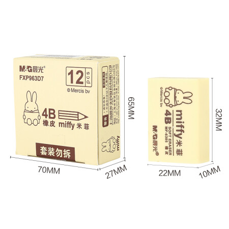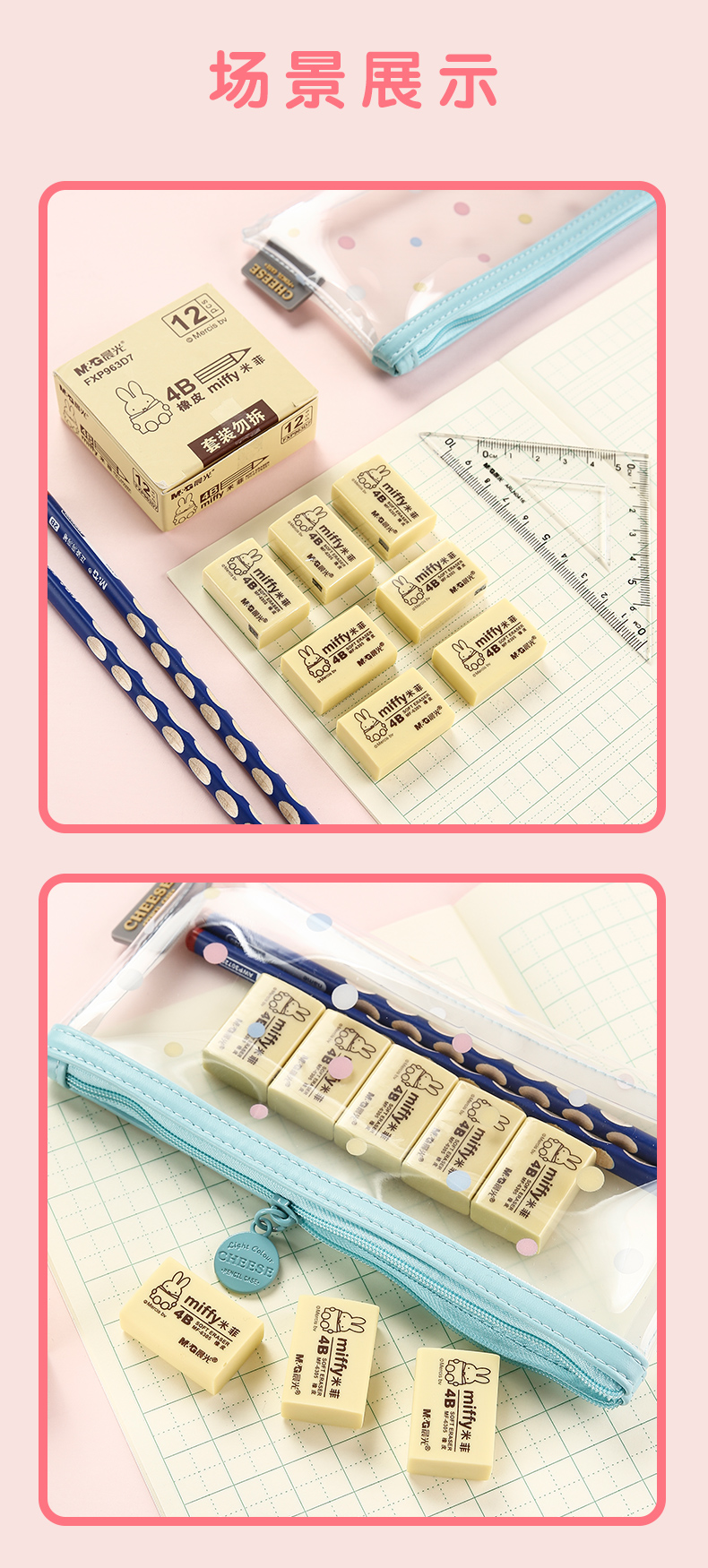 晨光 M&G 文具4B橡皮12塊裝 學生美術考試繪圖橡皮擦 米菲系列學習用品 黃色小號FXP963D7