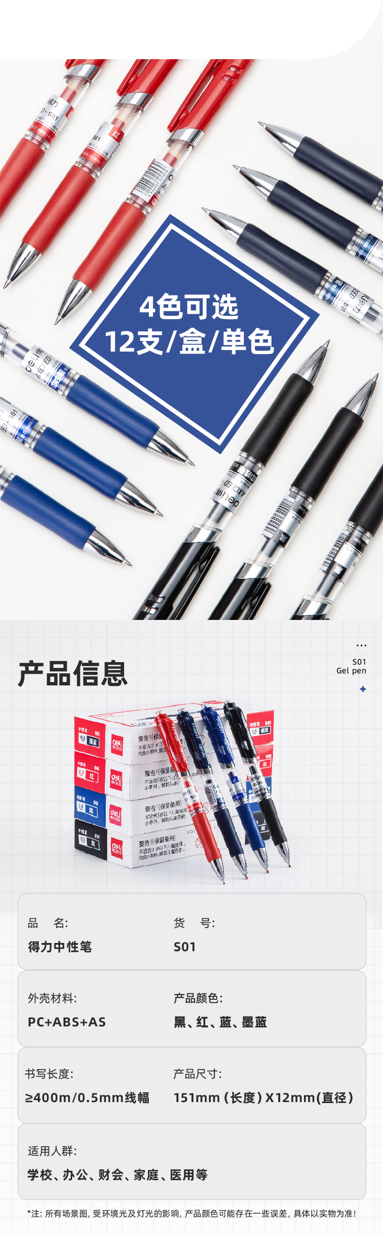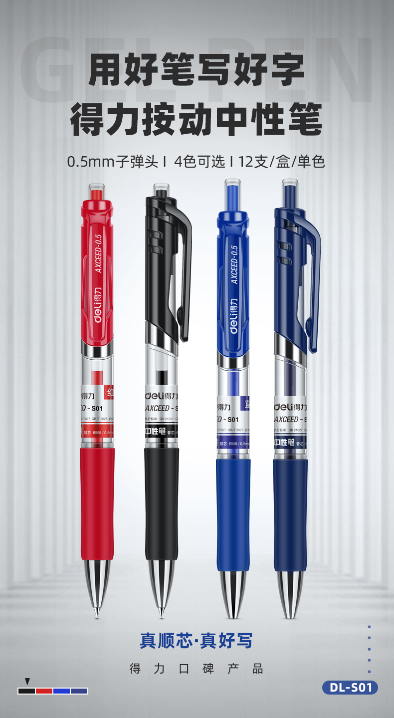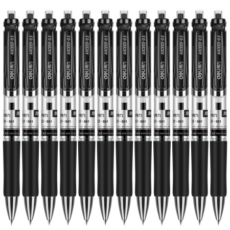 得力 deli S01中性筆簽字筆 0.5mm子彈頭經典辦公按動筆水筆 黑色 12支/盒