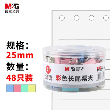 晨光 M&G 文具4#25mm 48只/罐 彩色長(zhǎng)尾夾 中號(hào)金屬票據(jù)夾 經(jīng)濟(jì)型辦公燕尾夾 48只/罐ABS916J4