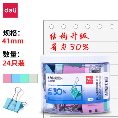 得力 deli 24只41mm省力彩色長尾夾票夾 2#金屬燕尾夾票據夾子 辦公用品 8552S