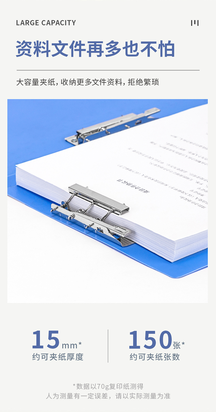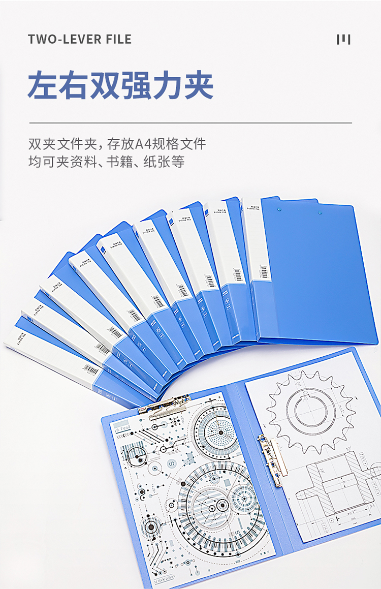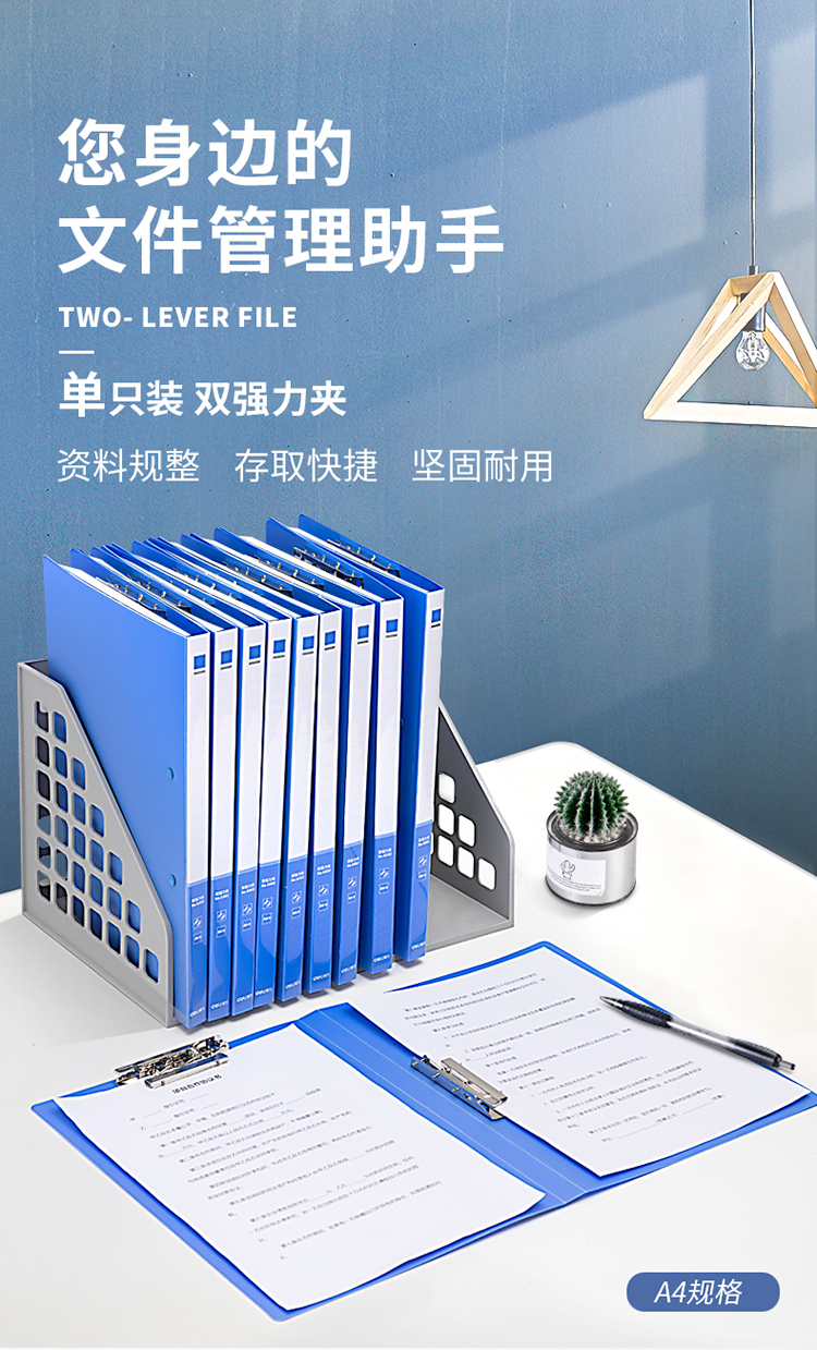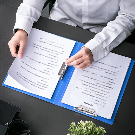 得力 deli A4金屬雙強力夾硬文件夾 大容量試卷收納資料夾詩朗誦簽約夾板 5302藍色1只